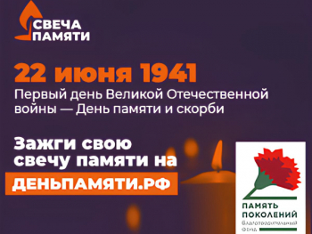 10 июня по всей России стартовала онлайн-акция «Свеча памяти». До 22 июня на сайте деньпамяти.рф каждый может зажечь свою виртуальную свечу и почтить память героев Великой Отечественной войны.